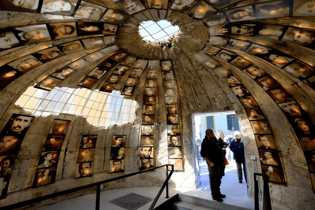 Among the most significant of these initiatives is Bunk’Art, officially opened in 2016, following the architectural and cultural conversion of a nuclear bunker built by the communist regime beneath the capital, Tirana. This enclosed space, once a symbol of extreme isolation, has been reconfigured into a narrative environment through which the state presents a renewed account of its past. Through exhibition design, audiovisual installations, and interpretive texts, the communist period is framed as a painful chapter in Albania’s history, yet one that has come to an end and been consciously surpassed.